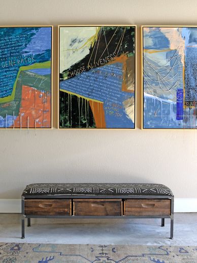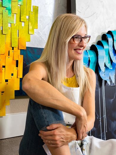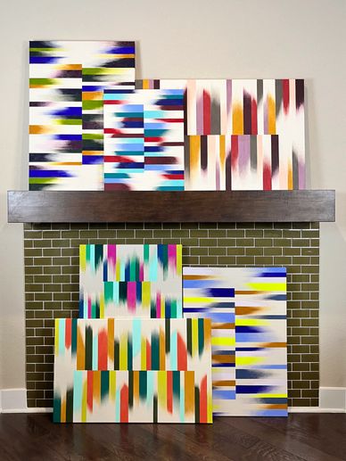 Through themes of mindfulness and rich with hidden symbolism, Julie's art cultivates connection while elevating interiors. Each artwork is so much more than a pretty rectangle on the wall. There is a personal narrative, an inspiration, a rallying cry, a universal theme of human experience we can all relate to. Julie works in collections, each with its own overarching message and distinct execution style. She draws upon her heavy conceptual background gained from a decade-long career as an Advertising Art Director to communicate through different combinations of mediums and materials. From whimsy to philosophical, the topics conveyed cultivate self reflection on the part of the viewer as we all try to become better versions of ourselves and uncover new perspectives.